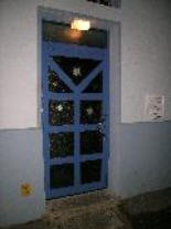 an die Haustür.